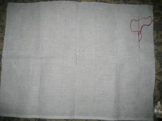 Please see the picture below. I had previously asked you to get ready a poplin cloth measuring 15 inches by 12 inches. Leave about 1 and 1/2 inch gap from all the 4 sides/edges and draw 6 lines using scale and pencil as shown in the figure. In the middle draw a small flower with 5 petals. This flower is for the satin stitch. Take care to draw thin lines. Do not draw very thick lines with very dark pencils. Otherwise the pencil marks may stain the cloth.